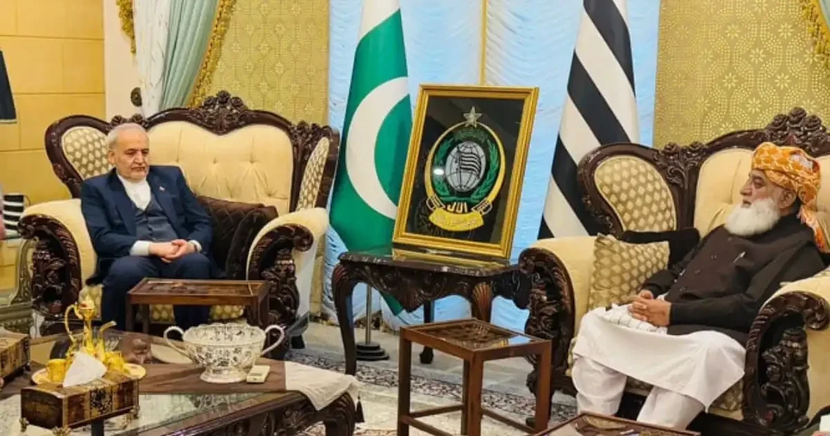 پاکستان میں متعین ایرانی سفیر ڈاکٹررضا امیری مقدم نے سربراہ جے یو آئی مولانا فضل الرحمان سے ان کی رہائشگاہ پر ملاقات کی، ایرانی سفیر نے ان کی خیریت دریافت کی اور خطے کی صورتحال پر تبادلہ خیال کیا۔