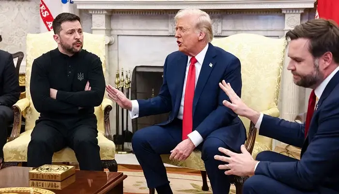 وائٹ ہاؤس میں امریکی صدر ڈونلڈ ٹرمپ اور یوکرین کے صدر کی ملاقات ہوئی، ملاقات کے دوران ڈونلڈ ٹرمپ غصے میں آگئے، ملاقات میں امریکی نائب صدر جے ڈی وینس بھی موجود تھے۔