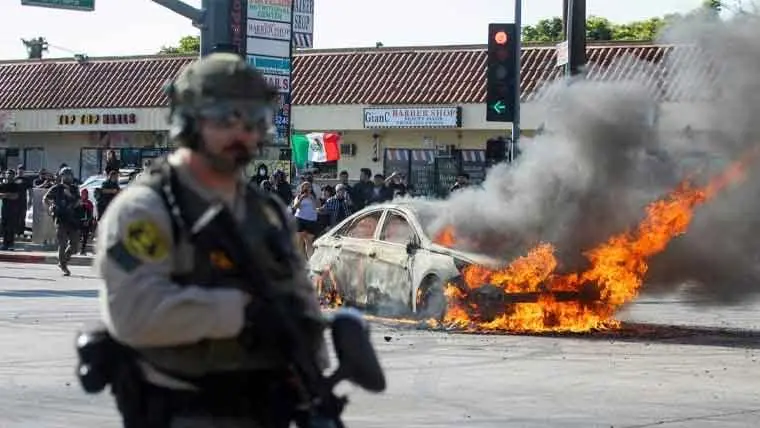 لاس اینجلس میں پرتشدد مظاہرین نے کچھ گاڑیوں کو نذر آتش بھی کیا، جس کے بعد وہاں نیشنل گارڈز کو تعینات کرتے ہوئے صدر ٹرمپ کا کہنا تھا کہ نیشنل گارڈزکوامن و امان یقینی بنانے کےلیے بھیجا گیا ہے۔ اشتعال انگیزی پھیلانے والے قانون سے بچ نہیں پائیں گے، امریکا میں پرتشدد مظاہروں کی کوئی جگہ نہیں۔